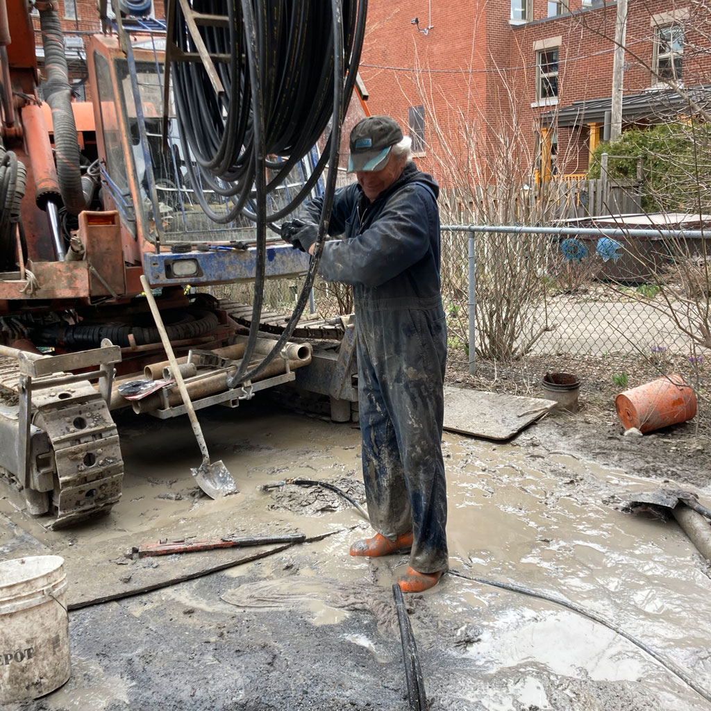 C'est une énergie renouvelable éprouvée qui consiste à puiser la chaleur du sol pour chauffer les résidences. Des puits d’environ 500 pieds de profondeur, forés dans la ruelle, permettent d’alimenter une pompe à chaleur avec un fluide caloporteur. La pompe à chaleur transfère l’énergie vers les résidences pour les chauffer en hiver et elle fonctionne en sens inverse pour climatiser en été, sur le même principe qu’un réfrigérateur.